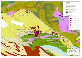Aurion Resources Ltd. (“Aurion”) (TSX VENTURE: “AU”) is pleased to report that drilling has begun at the Aamurusko prospect on its 100% owned Risti Project in Northern Finland.A total of 21 diamond drillholes are proposed over a distance of approximately 1.1 km along a Northeast-Southwest trending 1.0 km wide corridor. Within this corridor a total of 717 quartz vein blocks have assayed from nil to 2520 grams per tonne (g/t) Au and average 32.97 g/t Au with 102 assaying >31 g/t Au (one ounce per tonne – “Opt”).Aurion has also made several new high grade gold discoveries along regional unconformities southwest, northwest and east of Aamurusko.Further details are provided below.