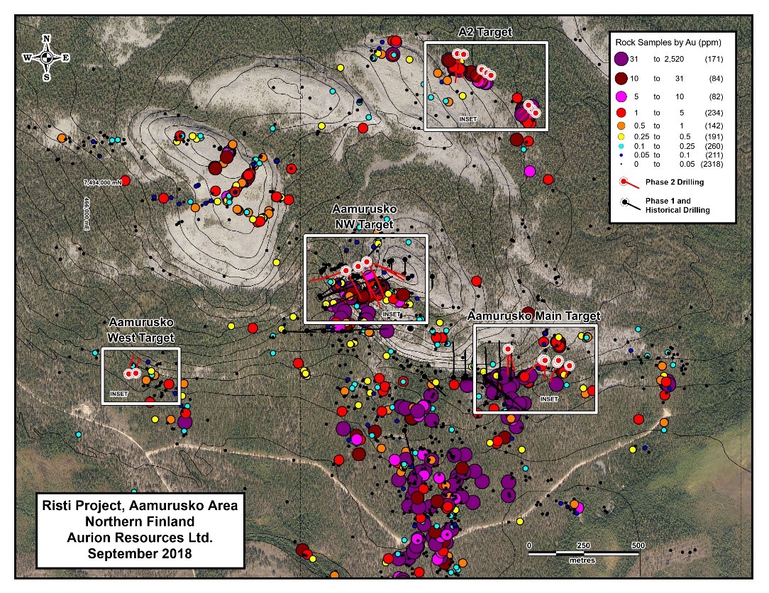 A total of approximately 5,239 metres (m) in 35 drillholes have been completed since early July. Partial assays have been received for 17 drillholes to date. Four targets have been tested including Aamurusko Main, Aamurusko West, Aamurusko NW and A2.