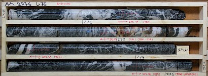 - Gold mineralized structures extend at least to 200 m vertical depth (AM21179).