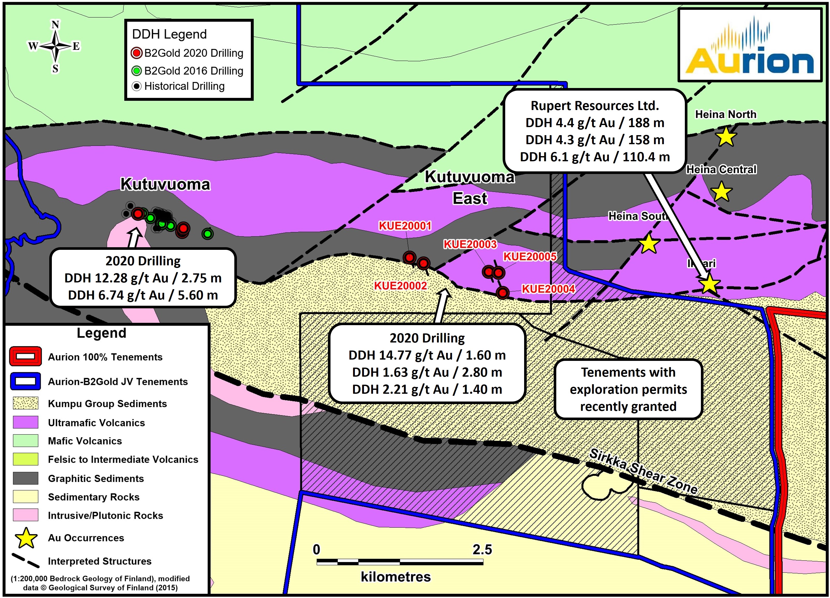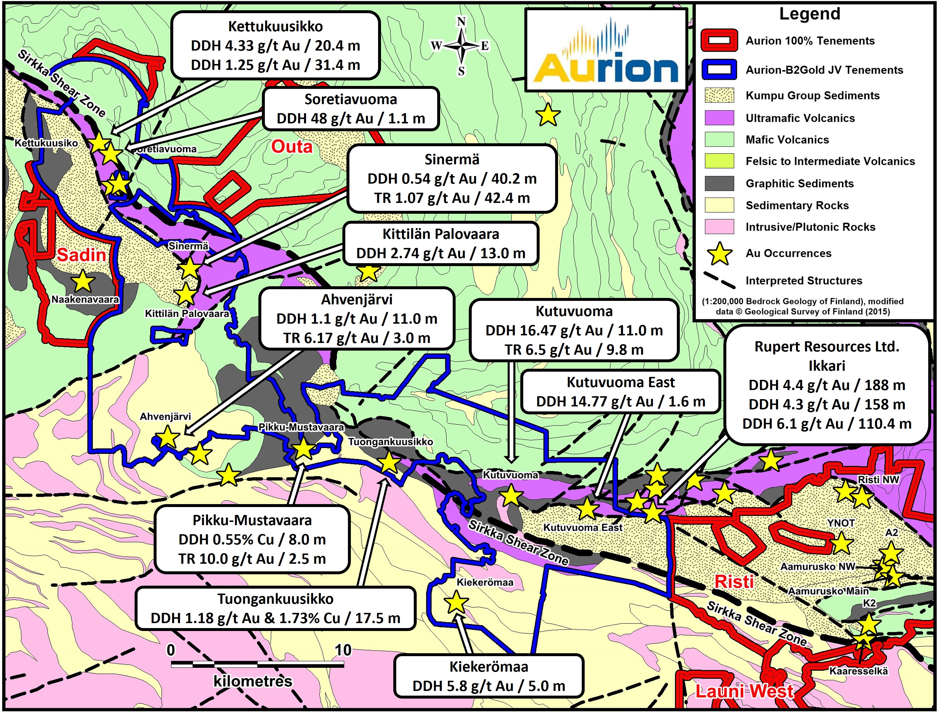 St. John’s, NFLD, September 2, 2021, Aurion Resources Ltd. (TSX VENTURE: AU) (OTCQX: AIRRF) (“Aurion” or the “Company”) announces an update on the exploration activities by its Joint Venture (JV) partner, B2Gold Corp. (TSX: BTO) (“B2Gold”) on the JV property in the Central Lapland Greenstone Belt in northern Finland.